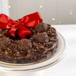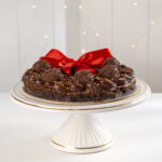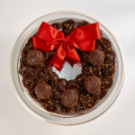 Brownie 23cm diâmetro, aprox 1kg, em formato de guirlanda, confeitado com brigadeiro tradicional com 5 brigadeiros recheados de brownie.Laço e decoração inclusas! Serve aprox 8 a 10 pessoas