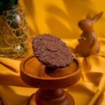 Ovo casca branca, coberto com chocolate ao leite crocante (chocolate ao leite com flocos de arroz), meia banda recheado com brigadeiro tradicional molinho e brownie , fechado com chocolate ao leite crocante, peso aprox 370g